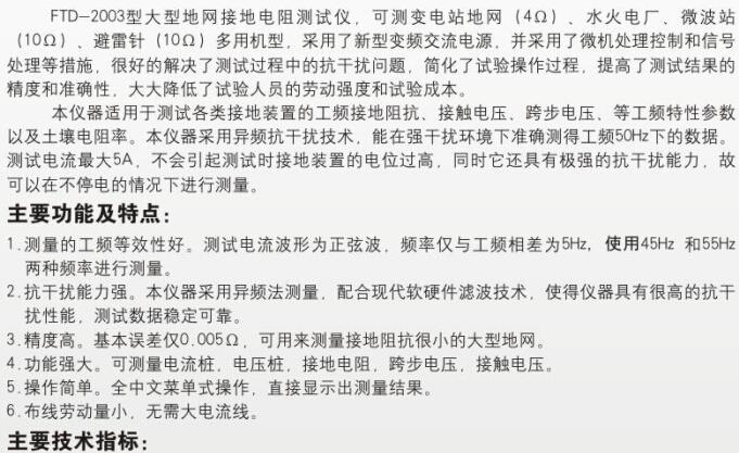 FTD-2003大地網(wǎng)接地電阻測試儀